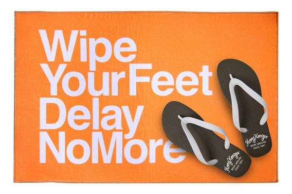 In the retro text of the 1980s, this bathmat has a play on words as...
