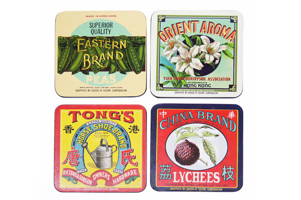 The 'Vintage Brands' coaster set is inspired by brands and packaging from the early 20th...