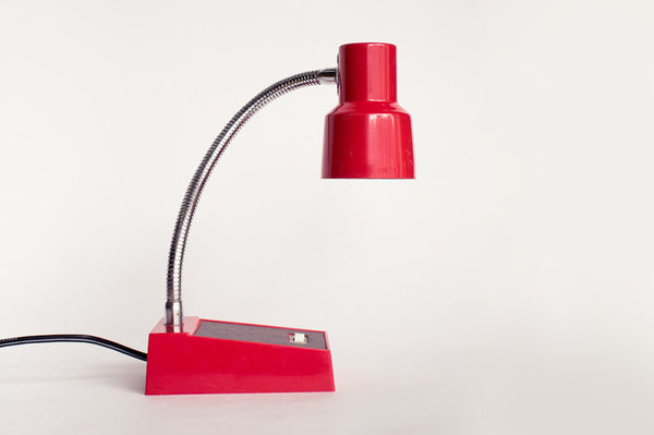 SCREAMING RED LUCK Let this vintage goose-neck desk lamp shine at your otherwise boring office...