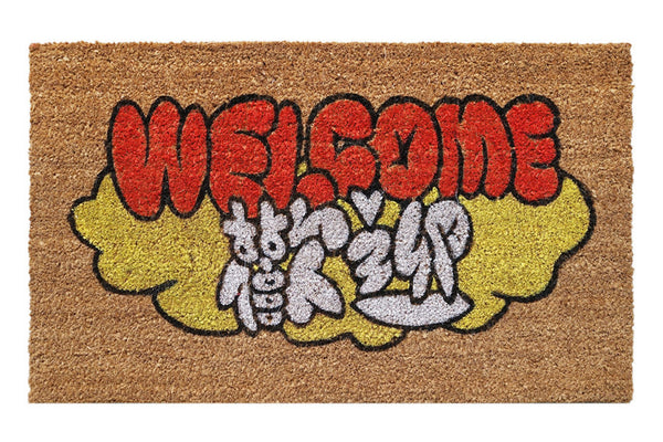 In the retro text of the 1980s, this bathmat has a play on words as...
