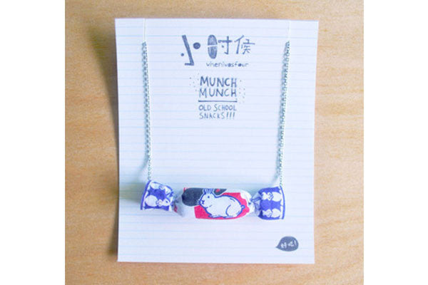 Irresistible, melt-in-your-mouth, chewy and creamy treats wrapped up in that iconic blue, red and white. Eating White Rabbit milk candy probably gave you that memorable first encounter with EDIBLE rice paper. Keep one with you (minus the calories) at all times with this delectable White Rabbit Necklace.