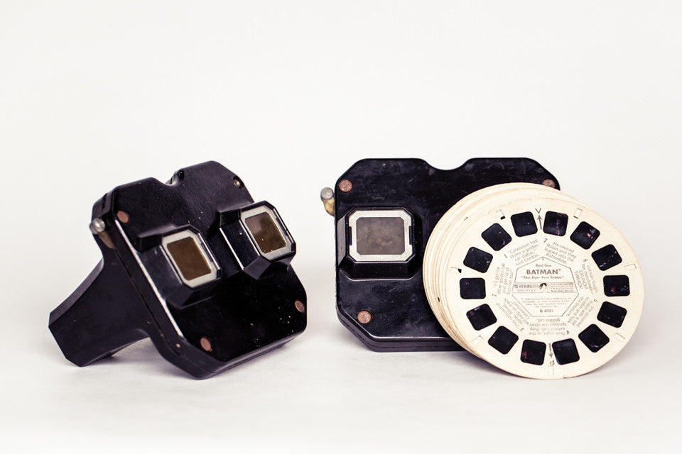 We confess; this 1950s Black Bakelike viewmaster is so old, we’ve never played with it as kids. Yeah, we were admittedly part of the Red Viewmaster era… which is kinda mainstream.