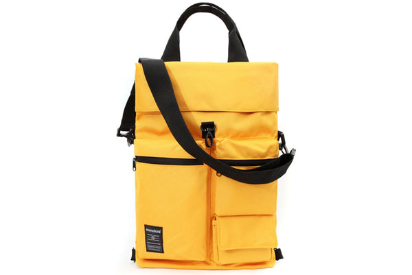 This indestructible bag is also indefatigable. The sleek MONOFOLD holds various detachable carriers from a clutch to a folder to a mini shopper bag. All can travel together as one whole: Or any part can be detached for solo trips and be re-attached again later.