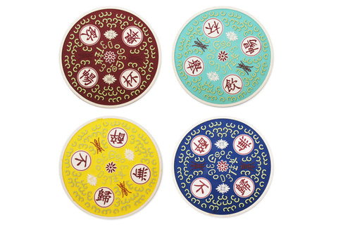 These fun and vibrantly-coloured coasters are made with the pattern traditionally seen on Chinese tableware....