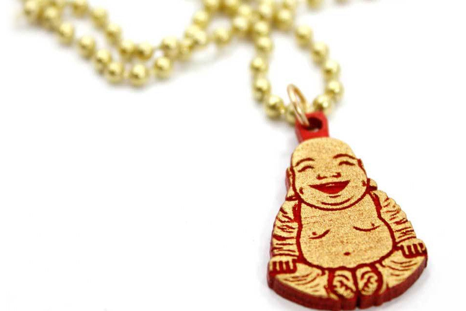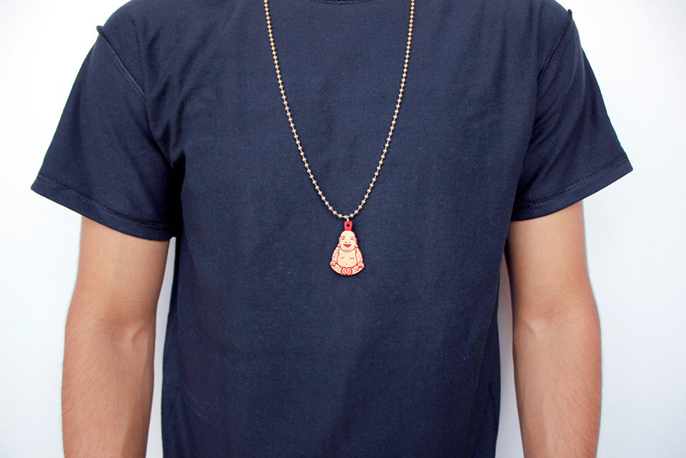 While we can't guarantee our Micro Buddha will bring you good karma, we can promise it'll keep you looking fresh! Featuring a smiling Buddha on the front, the Good Wood NYC Micro Buddha comes with a 30" Gold Ball Chain and is available in Gold/Red.