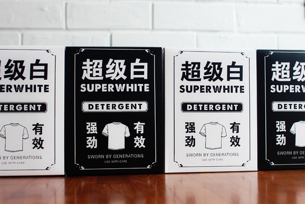 SUPERWHITE 超级白 produces merchandise that have been used by generations. Taking references from the past in its debut with a limited edition T-shirt packed in a vintage-looking detergent box, this irreverent label aims to produce more tongue-in-cheek items in the near future.